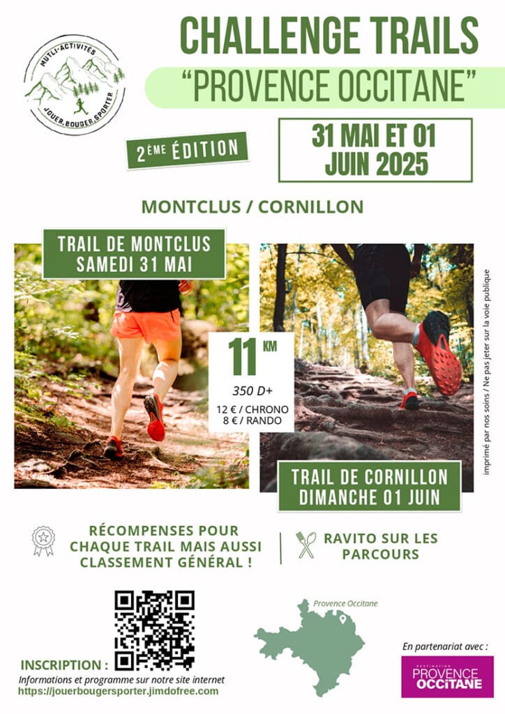 Pour cette seconde édition en 2025 on vous donne rendez-vous les 31 Mai et 01 Juin ! Venez découvrir l’espace Trail Provence Occitane. Entre vignes, garrigues et vallons, partez à l’aventure sur nos chemins. Deux journées de trails, deux parcours différents, au cœur de la vallée de la Cèze !
